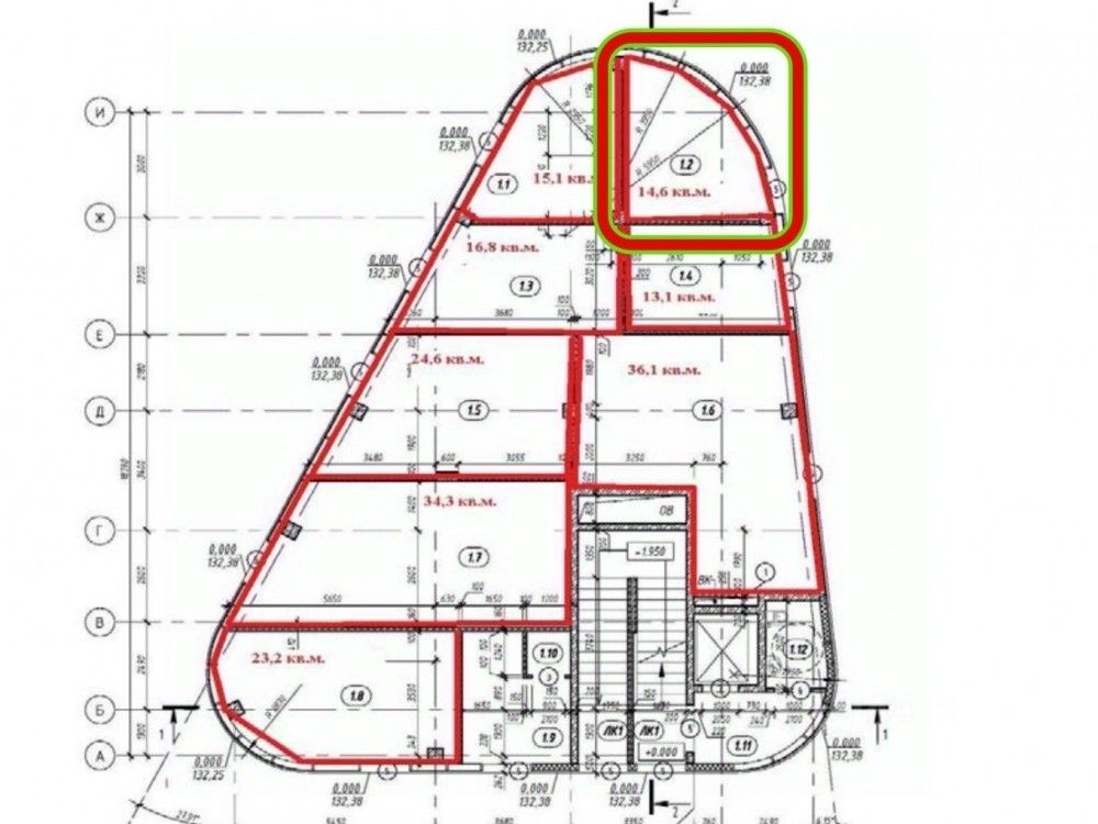 . 1 этаж 3-х этажного административного здания, площадью 14,6 кв.м. Первая линия. Отдельная входная группа. Электрическая мощность 10 кВт, высота потолков 8 м, витринные окна, размещение вывески на фасаде над входной группой.