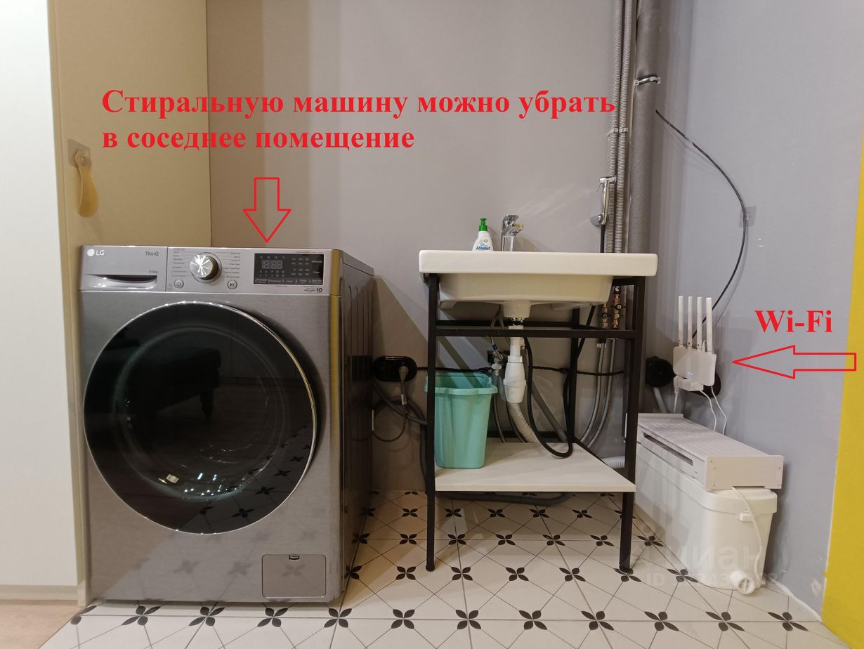 Помещение можно освободить от стиральной машины и/или платяных шкафов.