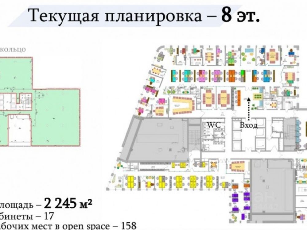 В аренду офисное помещение 2 245 м2, 8 этаж в БЦ "Wall Street"