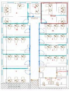 2 этаж - 53 м2, рассчитан на 5 рабочих мест.