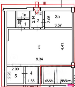 S общ = 65,4кв.м., зальная планировка (зал 37м2 + два кабинета).