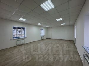 Площадь 55 м. Кв., правильной прямоугольной формы, очень теплое с высокими потолками.