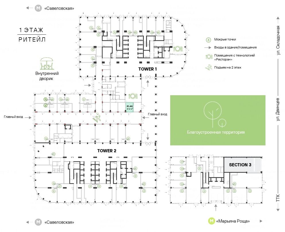 Аренда Street-retail помещения в бизнес-центре класса А STONE Савеловская в высокой строительной готовности. Срок реализации 2025 год.