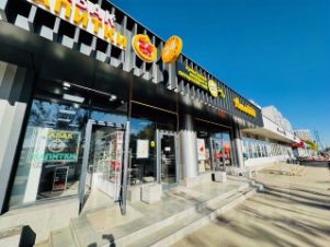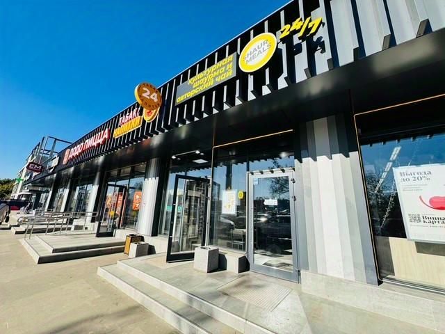 Первый этаж торгового здания, отдельный вход, большая витрина.