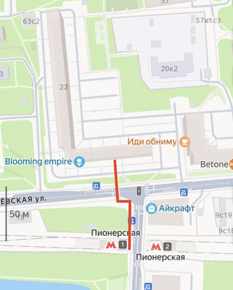 Расположено на 1 линии, хороший трафик, минута от метро пионерская