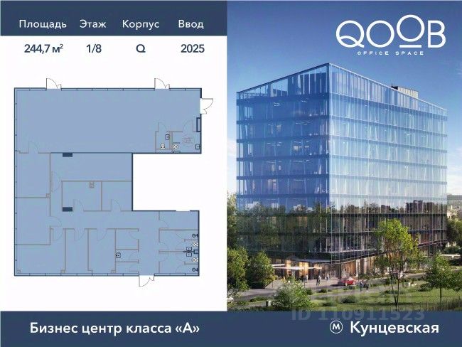 Помещение свободного назначения 244,7 м2 на 1-м этаже в новом бизнес-центре А класса QOOB