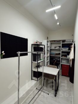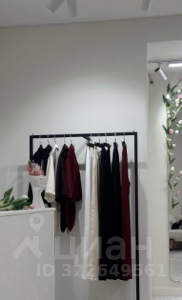 Огромные шкафы для хранения вещей, красивые рейлы, стол ресепшен, красивая примерочная с дорогим светом.