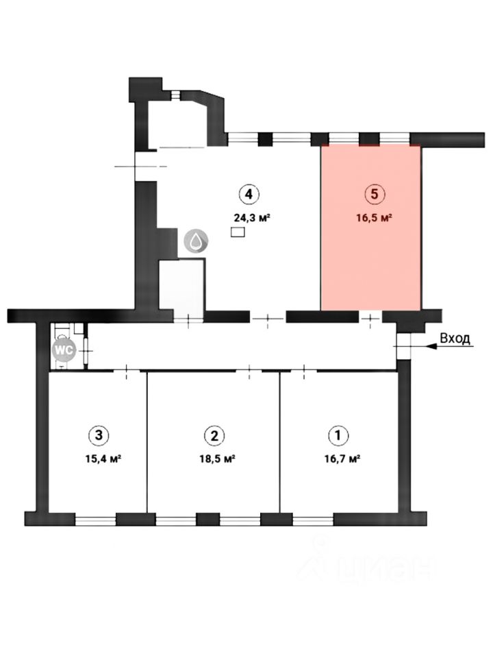 Помещение 5 (см.планировку). Площадь 16,5 м2. Высота потолка 3,1 м. Новый ремонт (обои под покраску, натяжной потолок, встроенные светильники, напольное ламинатное покрытие, стильная дверь). Кондиционер. Два окна выходят в тихий двор. Скоростной интернет. Доступ 24/7.