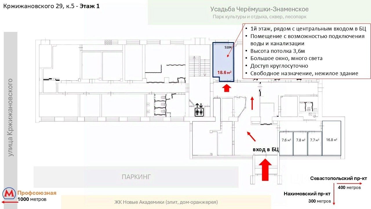 Ближайшее метро Профсоюзная, Академическая, Калужская - район с высокой деловой активностью.