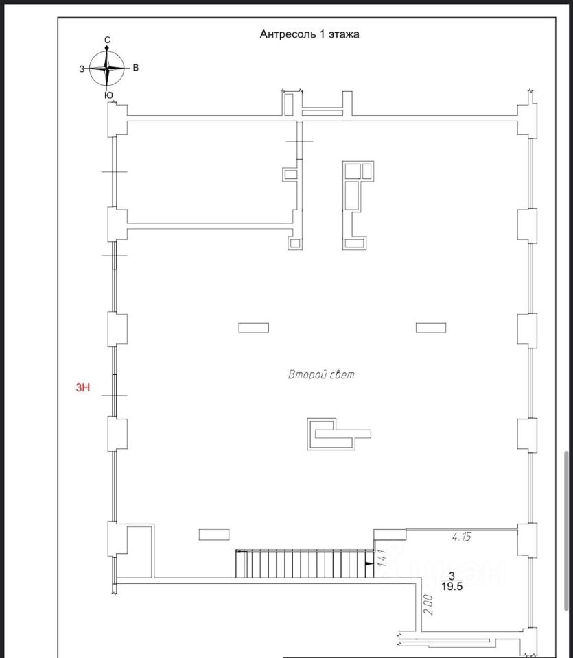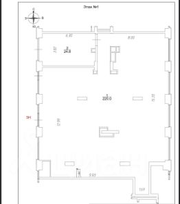 Помещение делится пополам от исходных 264,3 м². Высота потолка 6,23 м, основной зал + подсобная зона, есть антресоль (БКТ).