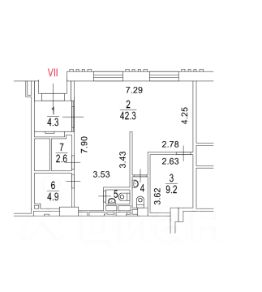 Коридор; Просторная комната 42 метра с двумя окнами, санузел; две отдельные комнаты.