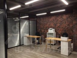 Новый офис в самом центр. Окна панорамные, имеется стеклянная перегородка, ремонт в стиле Лофт, использовались дорогие материалы.