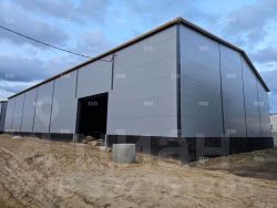 Общая площадь комплекса: 3 000 м², два склада по -1 000 м2. Двое ворот в каждом складе - с боку и торца. Ширина ворот - 4 м. Высота потолка - 8 м., до балок - 6.5 м. Ширина, длина склада - 30 м на 40 м. Пол - бетон с покрытием антипыль. Стены и кровля - сэндвич-панели. Колонны внутри склада отсутствуют, один объем. Асфальтированная площадка и подъезд. Электрическая мощность: до 150 кВт. Место для парковки ГТС и ЛТС. Возможность подключения отопления и ХВС/канализации. Доступ 24/7. Удобный подъезд - асфальт. Охраняемая территория.