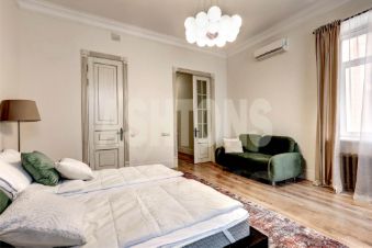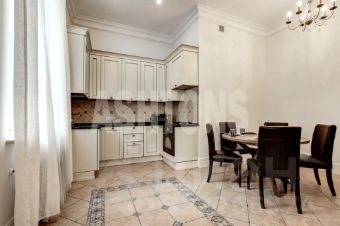 Функциональная планировка квартиры: общая зона с камином, кухня, 2 кабинета, 2 СУ с ванной и душевой кабиной, гардеробная комната, просторный холл. Возможно вывести всю мебель. Встроенная кухня укомплектована всей бытовой техникой известных брендов. Окна выходят в тихий светлый двор.