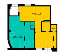Можно арендовать частями: 101.3 м2, 71.9 м2, 59,7 м2, 41.6 м2, 30.3 м2