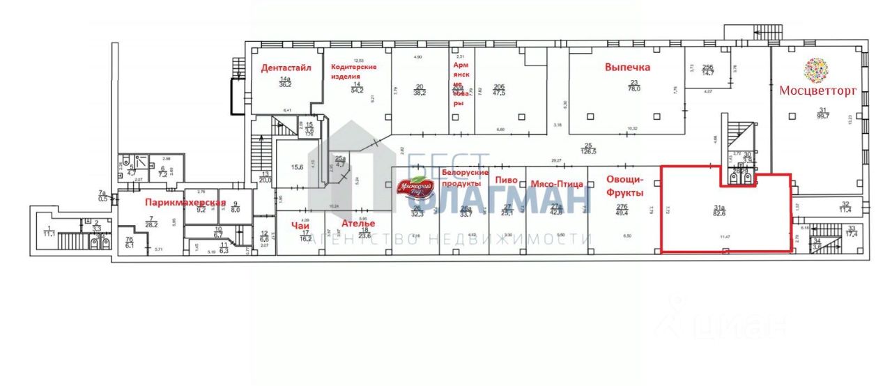 Арт. 111451765 Сдам торговую площадь 83 м2 за 241500 руб/мес
