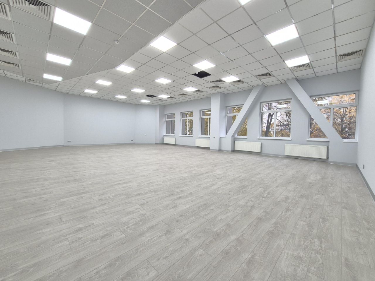 Светлое помещение после ремонта с высокими потолками и большими окнами.