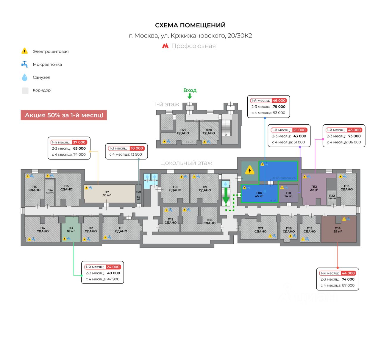 Прямая аренда (от года), минимальный срок аренды 3 месяца, доступны арендные каникулы, обеспечительный платёж 93000 ₽, предоплата за 1 месяц