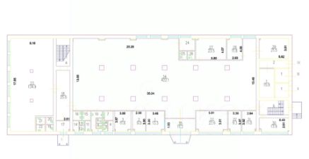 Блок преимущественно открытой планировки, есть несколько кабинетов, переговорных комнат, встроенная кухня и санузлы.