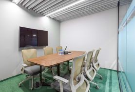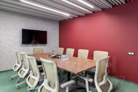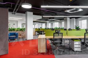 На этаже есть зона ресепшн, оборудованная кухня и зона приема пищи, зона отдыха и встречи гостей, санузлы и переговорные комнаты.