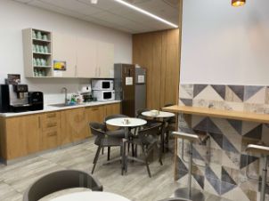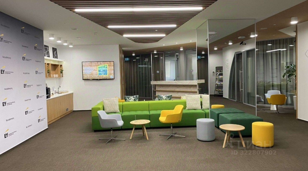 Есть зона ресепшн и отдыха, большая рабочая зона open space, кухня, переговорные комнаты, санузлы, гардеробная. Выполнен дизайнерский ремонт.