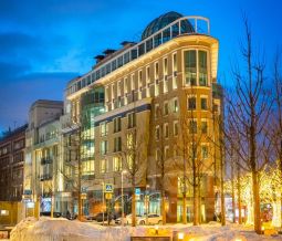 Бизнес-центр представляет собой современное здание с необычными фасадами и стеклянным панорамным куполом с собственной террасой на кровле.