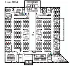 6 этаж - 1850 м2, рассчитан на 250 рабочих мест.