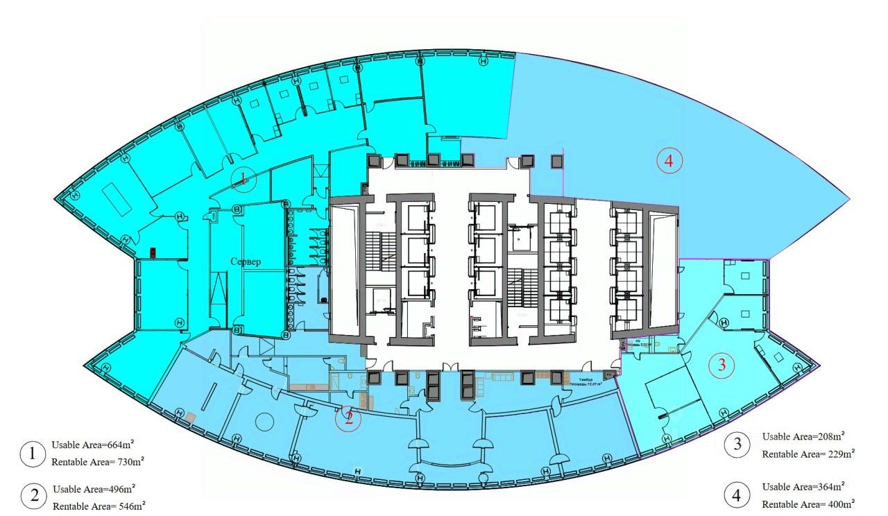 Полезная площадь блока - 496 м2.