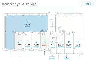 Здание возле метро Планерная, менее одной минуты пешком и рядом с МКАД. Сверхинтенсивный автомобильный и пешеходный трафик. Развитая инфраструктура района. Крупный жилой массив.