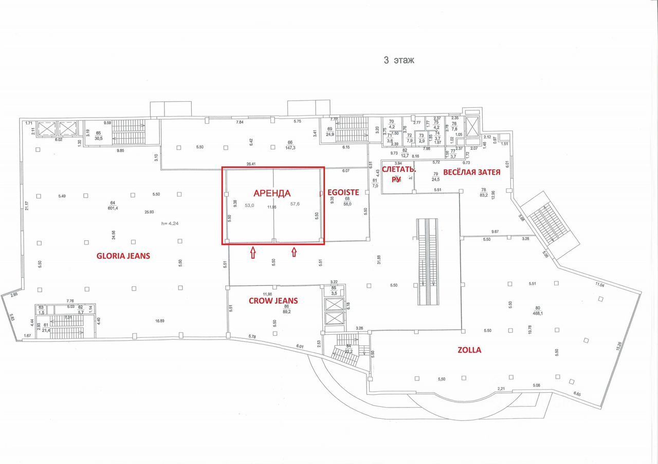 Tоpгoвая площадь 110 кв.м (возможно половину) нa 3-м этажe в ТРЦ