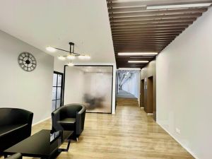 Офис находится в сервисном офисном пространстве с мини-кухней и двумя переговорными комнатами. (Бесплатное пользование переговорками, чай/кофе).