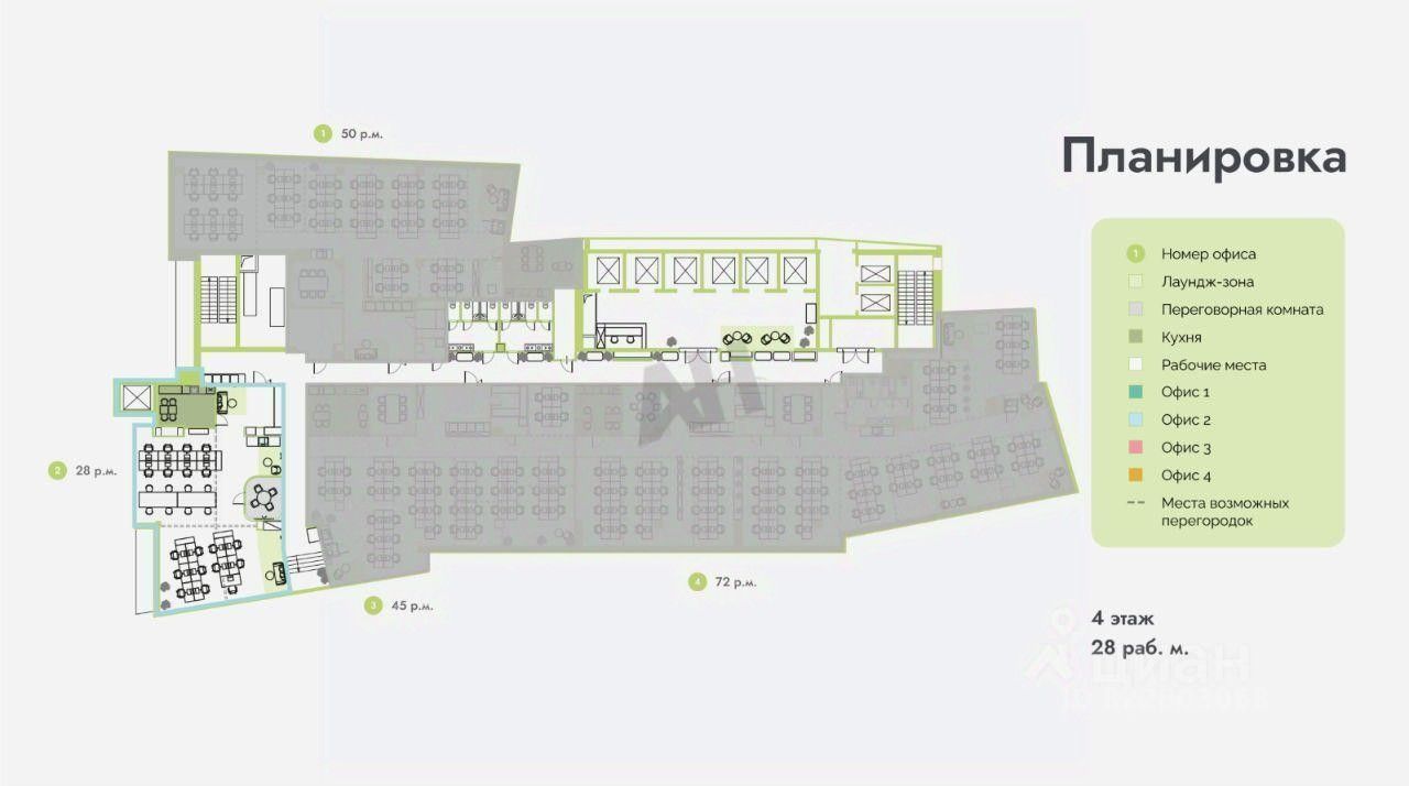 - Гибкая планировка с возможностью о адаптации под ваш формат работы