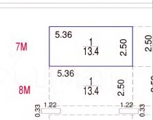Габариты 536х250 см. Площадь 13,4 кв.м.