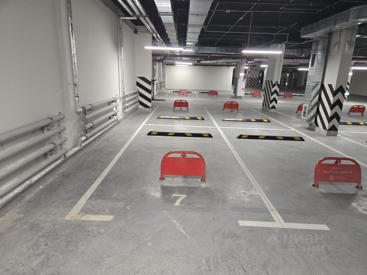 На машиноместе установлены резиновый колесоотбойник и блокиратор от застройщика.