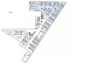 Помещение занимает полностью 1 этаж. Есть просторный второй этаж. Планировка смешанная: имеются открытые залы и достаточное количество кабинетов. Помещение включает зону ресепшен, гардеробную, кухню, серверную, сан. узел в блоке для сотрудников. Отличительной особенностью офиса является большое количество окон и высокие потолки, благодаря чему в помещении достаточно естественного света.