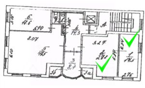 3 этаж, 2 кабинета без мебели, сан.узел на этаже.