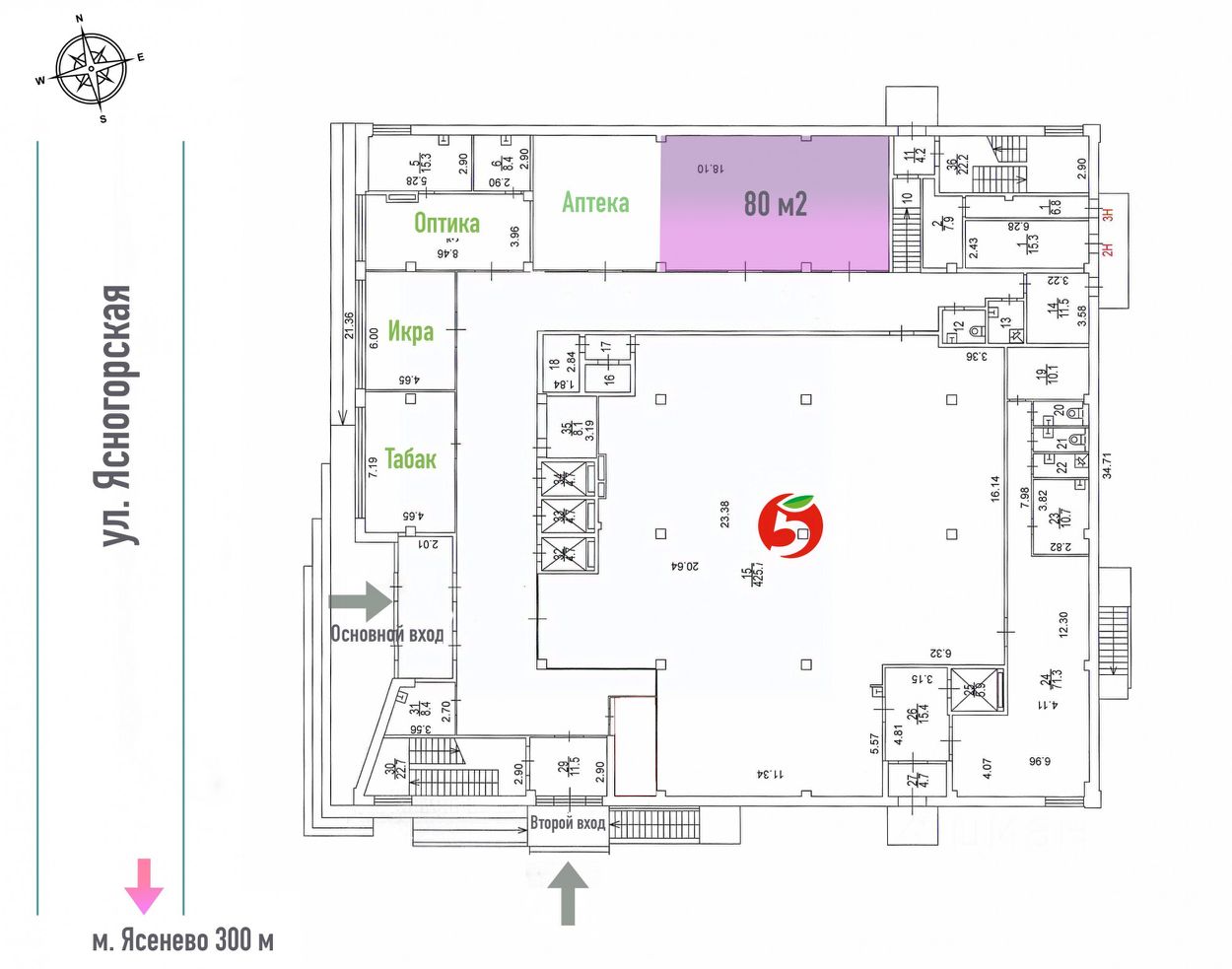 Сдаётся в аренду торговое помещение в самом сердце яркого экономического района Ясенево на первой линии по адресу: Москва, Ясногорская ул., 7А. Это коммерческое пространство общей площадью 80 м² расположено на первом этаже известного торгового центра "Этажи", что обеспечивает высокий пешеходный трафик и постоянный интерес со стороны населения.