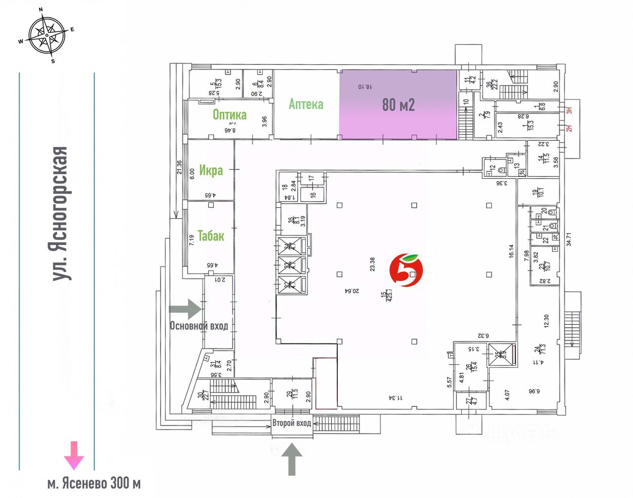 Соседство с такими крупными арендаторами как "Пятёрочка" и фитнес-клуб "SРIRIT" создаёт синергию и благоприятную атмосферу для развития торговли и услуг. Рядом расположены другие федеральные сети, что делает этот торговый центр настоящей точкой притяжения в густо заселённом районе Ясенево. А отличная транспортная доступность — всего 3 минуты пешком до метро — обеспечивает легкую доступность для ваших клиентов.