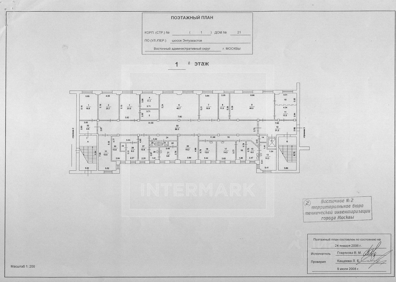Энтузиастов 21 стр.1 (1941 год постройки, 5 этажей) : 2 809.4 м²