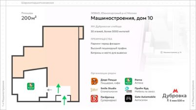 Торговая площадь на 1й линии в ЖК Дубровская слобода. Высокий трафик, хороший обзор витрин, открытая планировка для торгового зала.