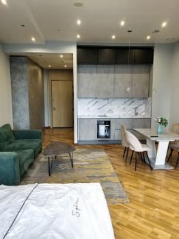 Апартамент с отделкой, полностью меблирован и готов к заселению.