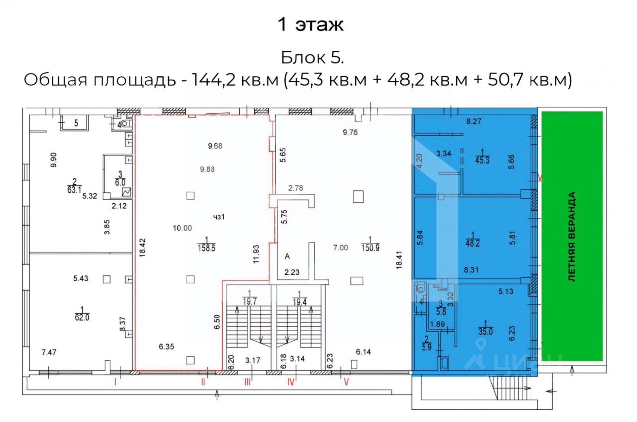1065801 . Предлагаем помещение свободного назначения, площадью 144.2 кв. м, расположенное на первом этаже 2-этажного административного здания.