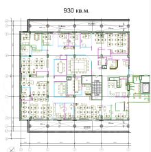 1. Помещение на 4-м этаже под офис, лабораторию: арендуемая площадь 1070 кв. м (полезная площадь 930 кв. м), 15 кабинетов, 115 рабочих мест, серверная, кухня, ресепшн, 4 переговорных комнаты, собственные с/у с душевой, 2 террасы по 110 кв. м.