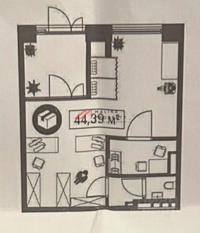 Помещение 44,6 м2 располагается на 1 этаже, открытая планировка, отдельный вход, высота потолка 3,8 м, витринные окна по фасаду. Помещение в бетоне. Парковка перед фасадом. Место для размещения рекламы на фасаде.