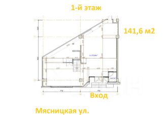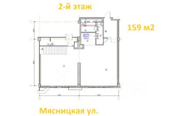 1-й этаж 141,6 м2, высота потолков 4,5 м, 2-й этаж 159 м2, высота потолков 3 м.