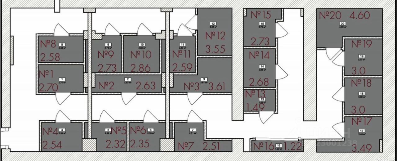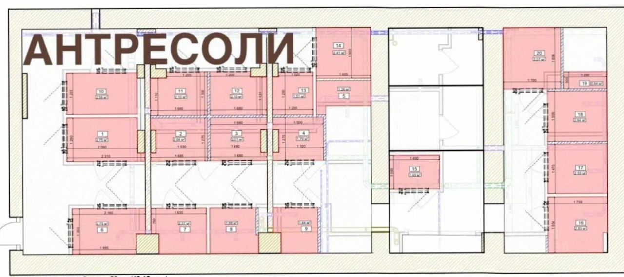 Всего 20 помещений и 20 антресолей. Смотрите план в фото к объявлению.