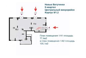 Помещение располагается в новом ЖК "Новые Ватутинки Центральный", состоящим из 4-х микрорайонов. Рядом есть остановка общественного транспорта. Соседнее помещение - продуктовая сеть "Магнит". ЖК Включает в себя 40 корпусов переменной этажности от 12 до 17 этажей и около 12 000 квартир. Соотношение коммерции к жилью - 6,5 %, что означает спрос со стороны арендаторов и предотвращает риск снижения арендных ставок в ЖК.