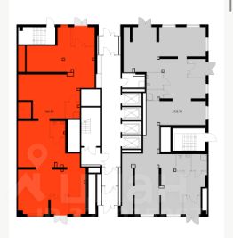 Помещение 190,1 м2, располагается на 1 этаже, открытая планировка, отдельный вход с фасада и со двора, высота потолка 4 м, витринные окна по фасаду. Электрическая мощность 40 кВт. Очень выгодное расположение, есть место для размещения рекламы.