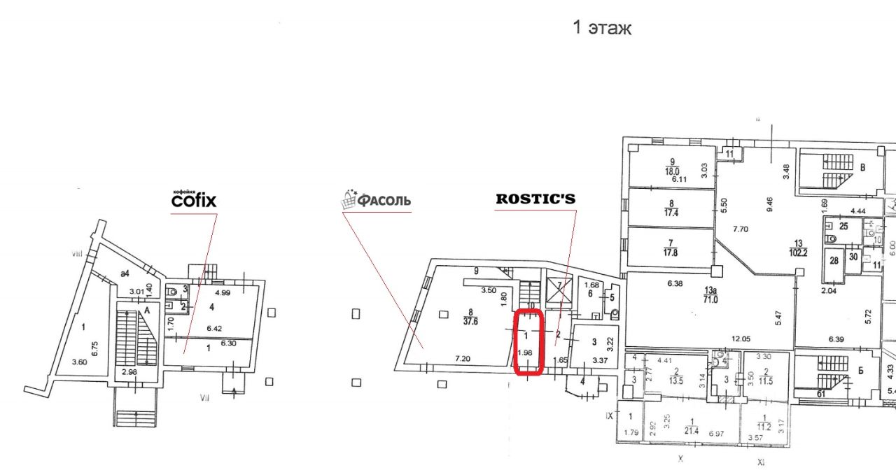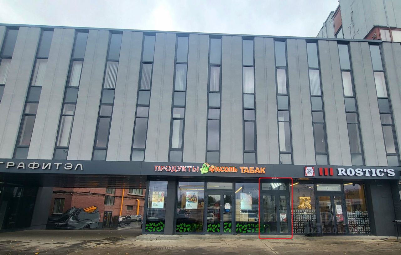 Павильон располагается на 1м этаже Бизнес Центра. Отдельный вход между популярными сетевиками - продуктовым магазином Фасоль и рестораном быстрого питания Ростикс. По фасаду здания располагаются: мед.центр, бургерная, кофейни, табак, шаурма, втб, сабвэй и другие.