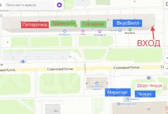 В этом же доме находятся сетевые арендаторы - Вкусвилл, Пятерочка, Горздрав, ЗдравСити и др. Люди активно ходят мимо помещения. Густонаселенный жилой массив.